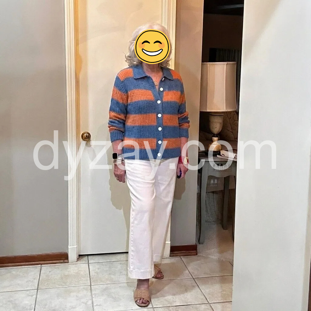 Yes!If you want a refund please contact our customer service at this email([email protected]).This Trendy Blue Striped Button Down Cardigan combines classic design with contemporary style. Featuring a timeless button-down front and bold blue stripes, it offers versatile layering for both casual and smart-casual looks. Crafted for comfort and ease of wear, this cardigan adds a refined touch to your wardrobe while ensuring practical warmth. Ideal for transitional seasons, it pairs well with a variety of outfits, providing a polished yet relaxed appearance.