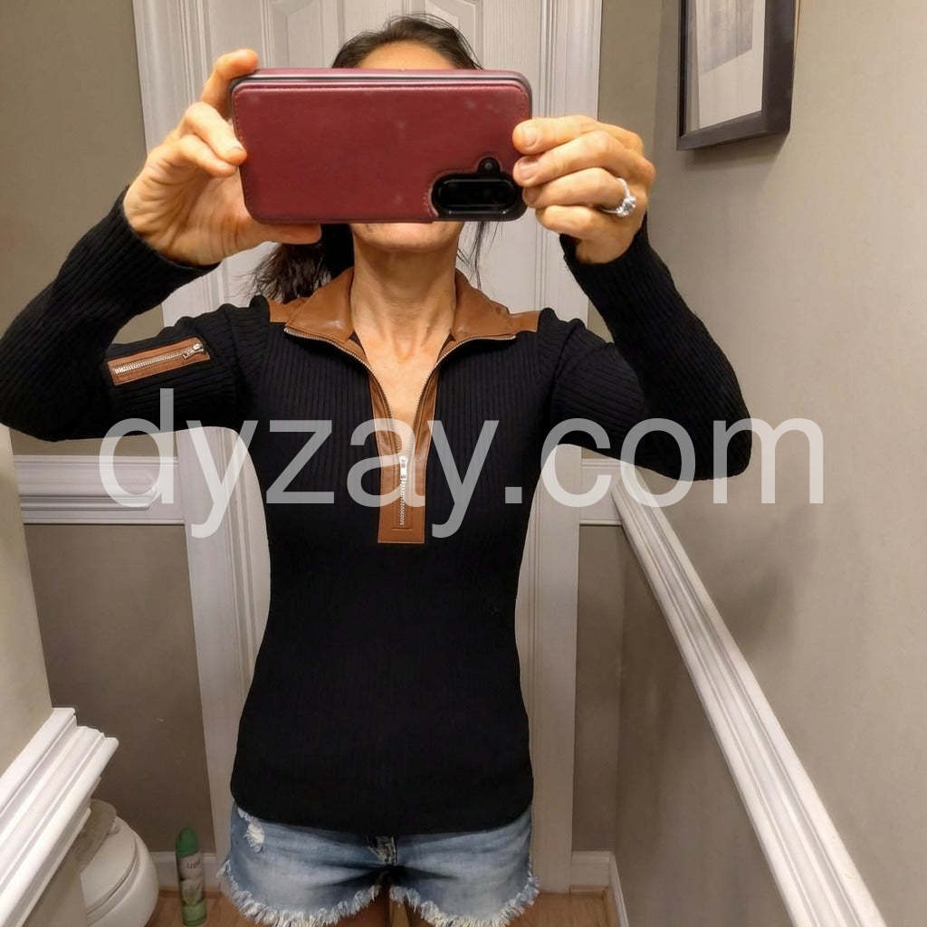 Yes!If you want a refund please contact our customer service at this email([email protected]).Elevate your everyday wardrobe with this sophisticated half-zip long sleeve top. Crafted in a timeless black hue, it seamlessly transitions from casual outings to professional settings. The half-zip design offers versatile styling options and practical temperature control, while the long sleeves provide coverage and a polished silhouette. Perfect for layering or wearing solo, this essential piece delivers understated elegance with modern functionality.