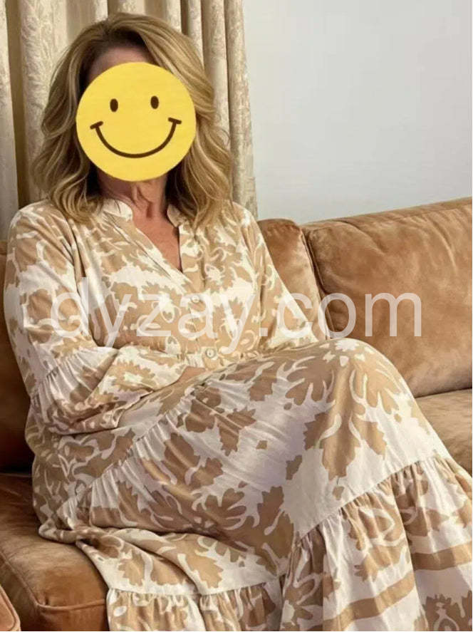 Attractive V-Neck 3/4 Sleeve Maxi Dress