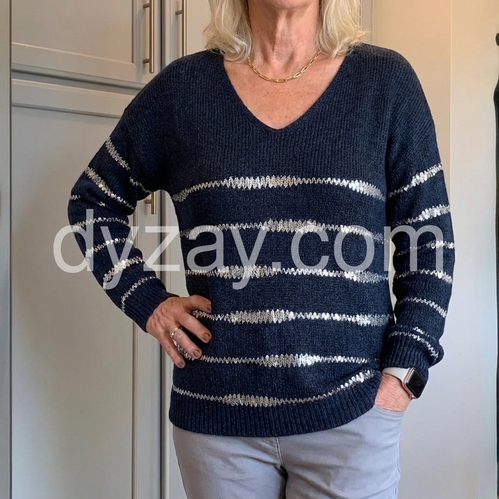 Yes!If you want a refund please contact our customer service at this email([email protected]).Stay stylish and warm with our Groovy V-Neck Striped Print Navy Sweater. The v-neck adds a touch of elegance while the striped print adds a trendy flair. Made with high-quality materials, this sweater is perfect for any occasion. Upgrade your wardrobe and stay cozy this season.