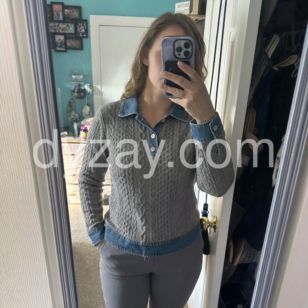 Yes!If you want a refund please contact our customer service at this email([email protected]).Elevate your casual wardrobe with this sophisticated grey cable knit sweater, featuring a distinctive denim collar that bridges classic and contemporary style. The intricate cable pattern adds textural depth and visual interest, while the long sleeves provide warmth and versatility for layering. Crafted with attention to detail, this piece transitions seamlessly from weekend wear to smart-casual settings, offering the comfort of premium knitwear with refined aesthetic appeal.