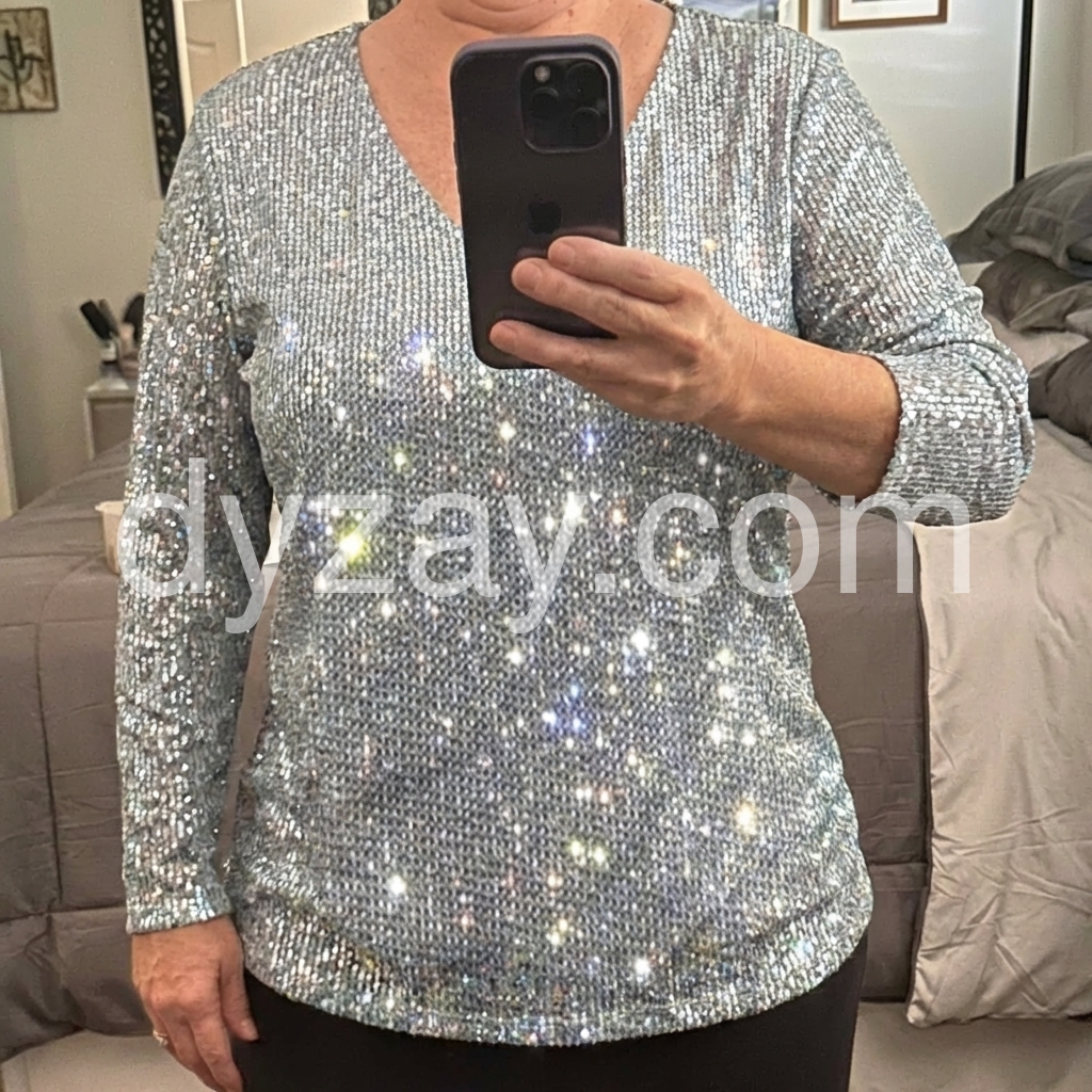 Yes!If you want a refund please contact our customer service at this email([email protected]).Don't miss out on this beautiful v-neck top! The intricate sequin detailing is sure to make a statement and the v-neck cut gives it a modern feel. This top is perfect for any special occasion or night out.