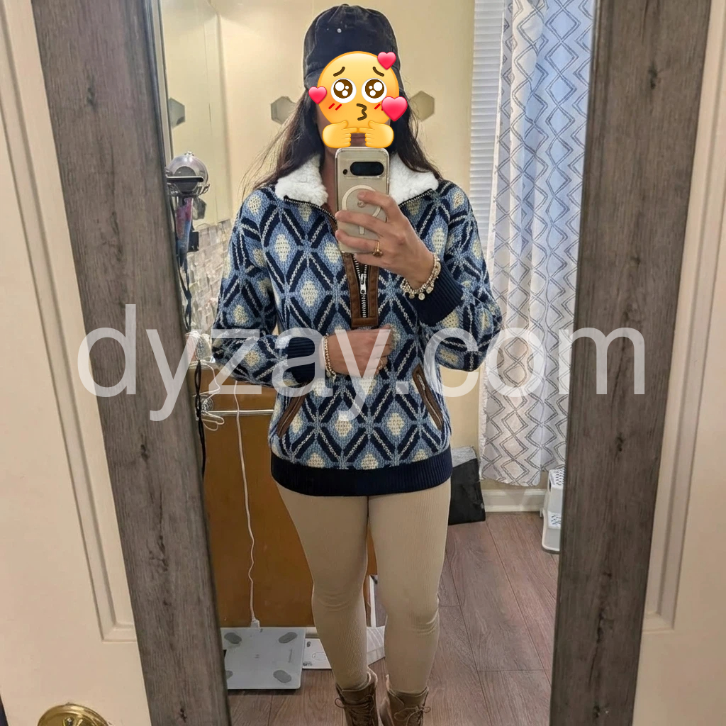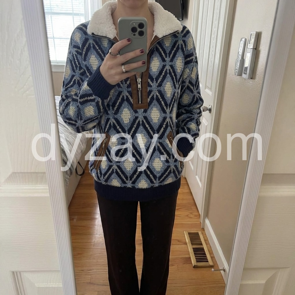 Yes!If you want a refund please contact our customer service at this email([email protected]).Elevate your cold-weather wardrobe with this sophisticated knit sweater, featuring a striking blue geometric pattern that adds visual interest to any ensemble. The fleece lining provides exceptional warmth and comfort, making it an ideal choice for layering or standalone wear during transitional seasons. Crafted from quality knit fabric, this piece combines contemporary design with practical functionality. The geometric detailing brings modern flair while maintaining versatility—pair it effortlessly with jeans, trousers, or skirts for polished everyday styling.
