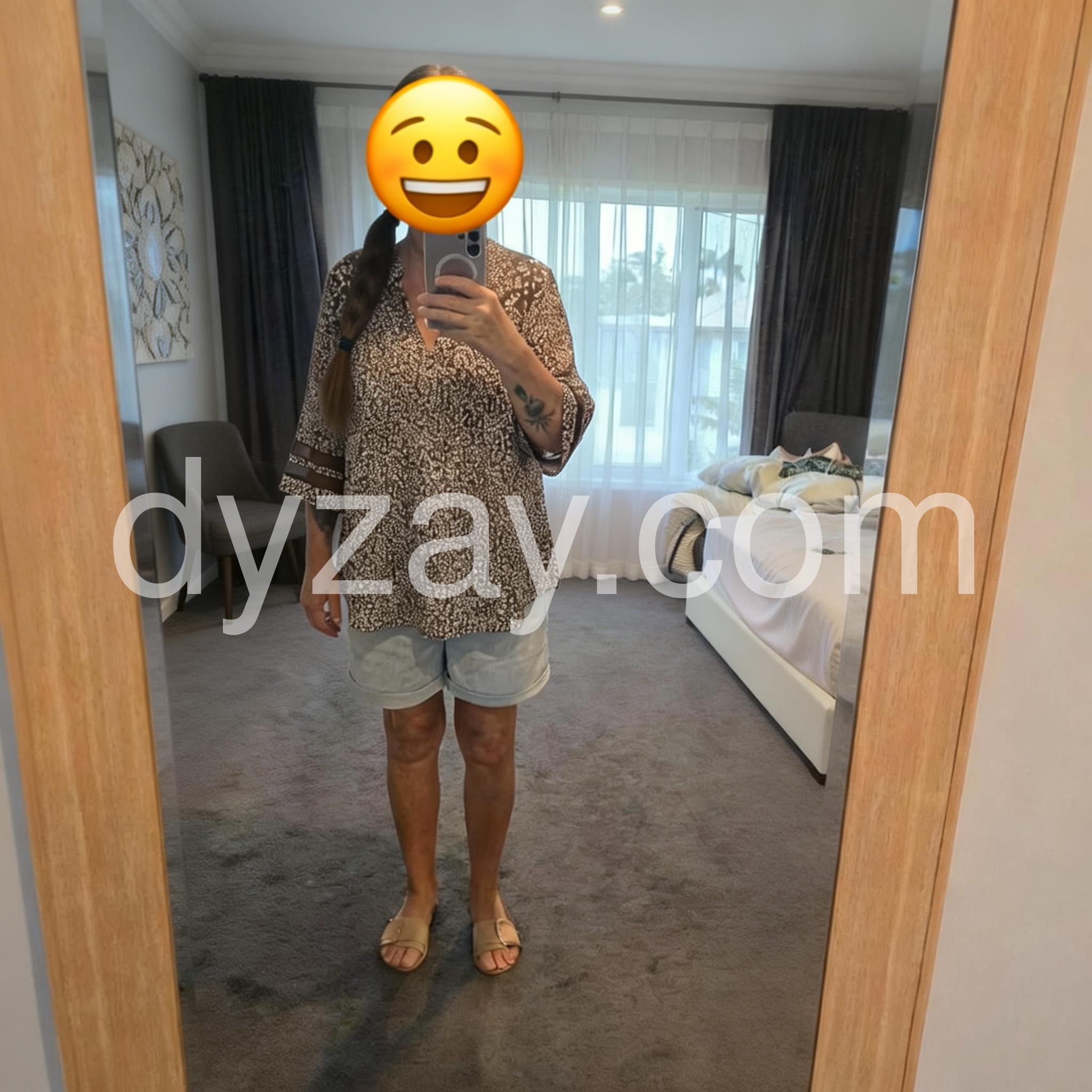 Yes!If you want a refund please contact our customer service at this email([email protected]).This brown V-neck 3/4 sleeve top is a versatile addition to any wardrobe. Made from high-quality fabric, it offers both comfort and style. With its classic design and flattering neckline, it is perfect for any occasion. Elevate your look with this timeless piece.